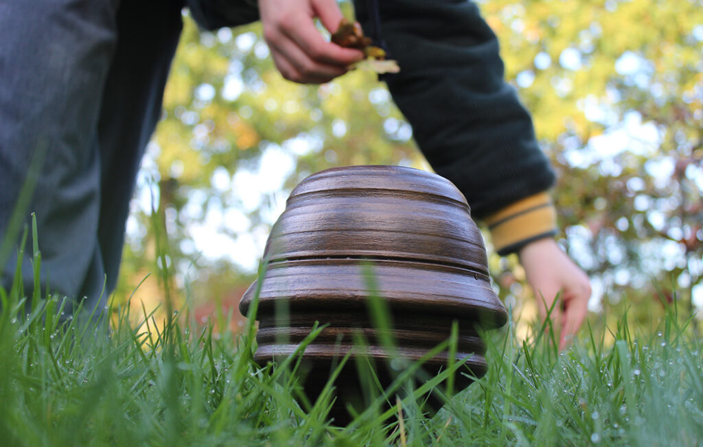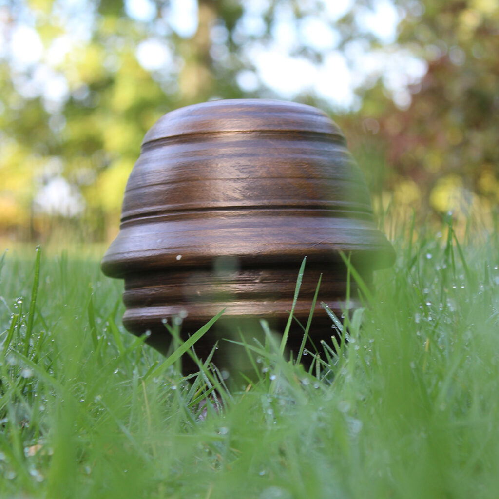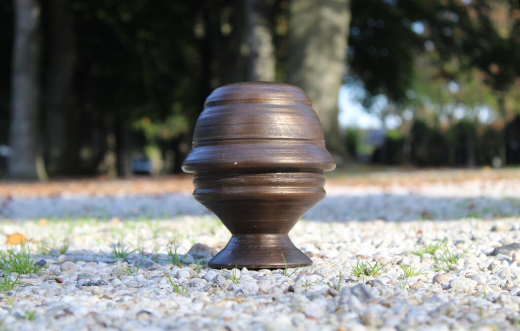 Soms is het kleinste gebaar het meest krachtig. Deze Portret Urn, uitgevoerd in Classic Bronze, werd geplaatst in het gras: stevig verankerd in de aarde, maar toch in harmonie met de omgeving.